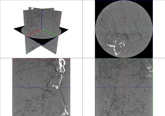 微米CT扫描实验室 一、实验室简介 本实验室隶属于澳门十大网投正规官网平台实验中心。主要功能是:岩石微观结构计算机断层扫描图像采集。实验室位于综合实验楼B106。 二、仪器设备 微纳米双射线管岩心CT扫描系统 仪器设备(型号):微纳米双射线管CT扫描系统V|Tome|X S180 & 240 品 牌:德国 GE 三、主要参数 (一)微纳米双射线管CT扫描系统 微纳米双射线管CT扫描系统由射线管、样品转台和探测器三大核心部分构成;根据样品尺寸调整扫描电压、电流、扫描张数、暴光时间等参数来完成样品测试。 表1. 微纳米CT基本性能参数 参数 测试范围 样品大小 1-260mm(样品直径) 扫描电压 微米管:10-240 kV 扫描电流 微米管:5-2800µA 扫描张数 1400-1800 暴光时间 500-2000ms (四)成果介绍 对扫描图像进行重构后,得到微样本三维灰度图像。 由于CT图像的灰度值反映的是岩石内部物质的相对密度,因此CT图像中明亮的部分认为是高密度物质,而深黑部分则认为是孔隙结构。通过ImageJ、AVIZO等软件对灰度图像进行区域选取、降噪处理,将图像分割与后处理可提取出孔隙结构模型、孔隙度、孔隙半径、喉道半径、配位数等参数。 某样品微米CT扫描图像 某样品微米CT扫描剖面图(三维切片,俯视图、XZ方向、YX方向) 某样品二值分割图像(黑色-孔隙;白色-颗粒) 某样品三维孔隙网络模型 某样品孔喉结构特征 四、实验室责任人 韩登林 联系电话:18601309981 五、实验预约流程 需与实验室责任人确定样品类型、数量、测试时间后,下载填写“分析测试申请表”,在开展实验当天提交纸质申请表。样品要求:圆柱状岩石样品,规格2.5cm(φ)*4cm(L)。
