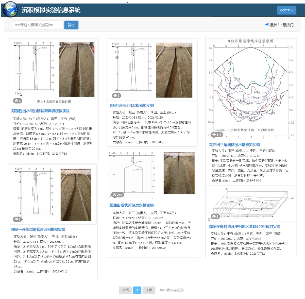 科普基地从建设到开放使用过程中一直坚持加强网络媒体平台的同步建设和公共科普信息宣传与服务。结合我院网站建设和十大网投正规官网地学类在线开放课程建设等工作,开展了中国地层标本长廊、湖泊沉积模拟实验、长江三峡标本长廊的等一系列数字化信息资源的制作与在线发布工作。 (1)构建了中国南北地层标本长廊网上实景三维模型 2023年,新建“中国地层标本长廊”课间地学实习基地,占地1350平方米,极大地丰富了十大网投正规官网地质课间实习资源,为了加强长廊的宣传推广,我们采用无人机倾斜摄影基础构建了长廊的实景三维模型(图51),并在网上发布。公众可足不出户地多层次多角度在线观察地质长廊的三维模型,达到身临其境的效果。技术上,采用大疆 精灵 4Pro无人机和无人机飞行控制软件和Context Capture建模软件构建了不同详细程度的三维模型,形成了数字长廊的三维数据体,发布成网络开放格式3DTiles,能够达到在线高效显示的目的。 中国地层标本长廊三维模型 (2)构建了长江三峡地层标本长廊网上展示动画 自20世纪初以来,三峡地区就已成为我国地质学家开展地层学、古生物学、沉积学等多种学科研究的重要场所;它同时也是澳门十大网投正规官网平台地球科学院系沿用多年的地层学、沉积学野外实习基地和开展过多项科研项目的区域,目前已积累了大量地质资料和研究成果。为将这些丰富的资料和成果转化为教学资源,抢救性地保护三峡地质资源,在中国石油天然气集团公司的资助下,设立了《长江三峡剖面微缩工程》项目,在澳门十大网投正规官网平台校园内建立了三峡地层标本长廊(图52)校内实习基地。为了将其该项目公众宣传,同时为了保证了地层标本的连续性和完整性,弥补了长廊标本的密度有限、且难以陈列易风化破碎的标本等问题,我们采用Flash动画技术制作了三峡长廊的动画视频集成了每一块标本的高清照片,公众可通过网站(图53)在线观察地质长廊的标本照片及其文字描述,学习相关地质知识。 长江三峡标本长廊 长江三峡标本长廊网络媒体 /cjysx/sjjxtj/zjsxbbzl.htm (3)建设了湖泊沉积模拟实验在线开放信息系统 面向湖泊沉积模拟实验大量实验数据资料的管理、分享和分析需求,提出B/S模式的沉积模拟实验信息系统(图54-图56),实现了沉积模拟实验的实验设计方案、实验观测数据、实验结果等信息的集成管理、高效检索和可视化分析等功能,从而为沉积模拟实验的网上信息化管理与分析应用提供可行方案。实验管理人员和大众可通过系统轻松完成实验项目检索、实验详情浏览、砂体测量数据的统计分析等工作。 实验相册浏览 系统首页(实验项目检索目录) 实验观测数据统计分析 同时,基地结合澳门十大网投正规官网平台主页宣传工作,围绕与科普基地相关的各类活动开展了大量同步的在线宣传报道工作(图57-图59)。例如,面向社会公众开放的“实验室开放日”活动,面向全校大学生开展的“地学实践竞赛”活动,面向蔡甸姚家林小学开展的大学生支教活动等。这些宣传报道将科普基地广泛地推荐给社会公众,起到了良好的辐射效应。 举行科普活动 举行科普活动 举行科普活动