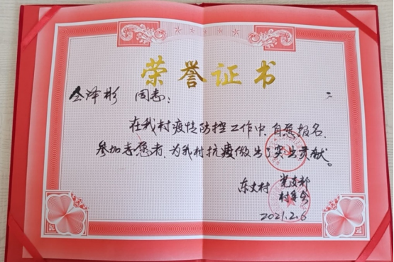 奋勇向前,“疫”站到底。2021年寒假期间,学院30余名学生党员和积极分子们响应党和国家的号召,主动报名家乡的抗疫志愿者,担起当代青年的责任。矿产QX201班的武建伟去年6月逆行返汉,主动报名参与毕业生返校离校志愿者工作,帮同学们搬行李、代发毕业证,为同届的毕业生服务。今年1月,他再一次选择披上红马甲,成为家乡的大学生志愿者,用行动诠释了乐于奉献、勇于担当的志愿者精神。矿物QX201班的仝泽彬和他的父亲主动请缨,父子上阵,投入到家乡的抗疫志愿工作中,仝泽彬觉得:“身为新时代的研究生,做点力所能及的事,报效祖国、回报社会,让更多人过了一个安心年、健康年,是充实而快乐的”。本科生党支部何一鸣在回到家乡的第二天就去社区报了名,参加抗疫志愿者,每天早出晚归,宣传防疫知识,入户走访摸排,进行核酸检测预登记,站岗值守。面对紧张而充实志愿者服务工作,何一鸣从不觉得辛苦,她用实际行动证明了新时代的青年在危难时刻敢于担当的精神,是好样的、靠得住的。