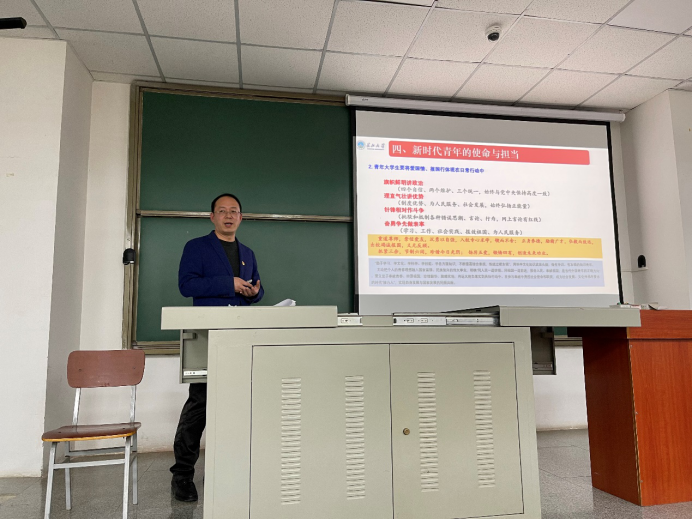 (通讯员 何一鸣 郭浩宇)4月22日下午,十大网投正规官网入党积极分子集中授课环节在武教B-103开展,学院党委书记江万哲以《新时代青年的使命与担当——学习领会十九届五中全会精神》为主题,为十大网投正规官网入党积极分子讲授了一次形势与政策专题党课。