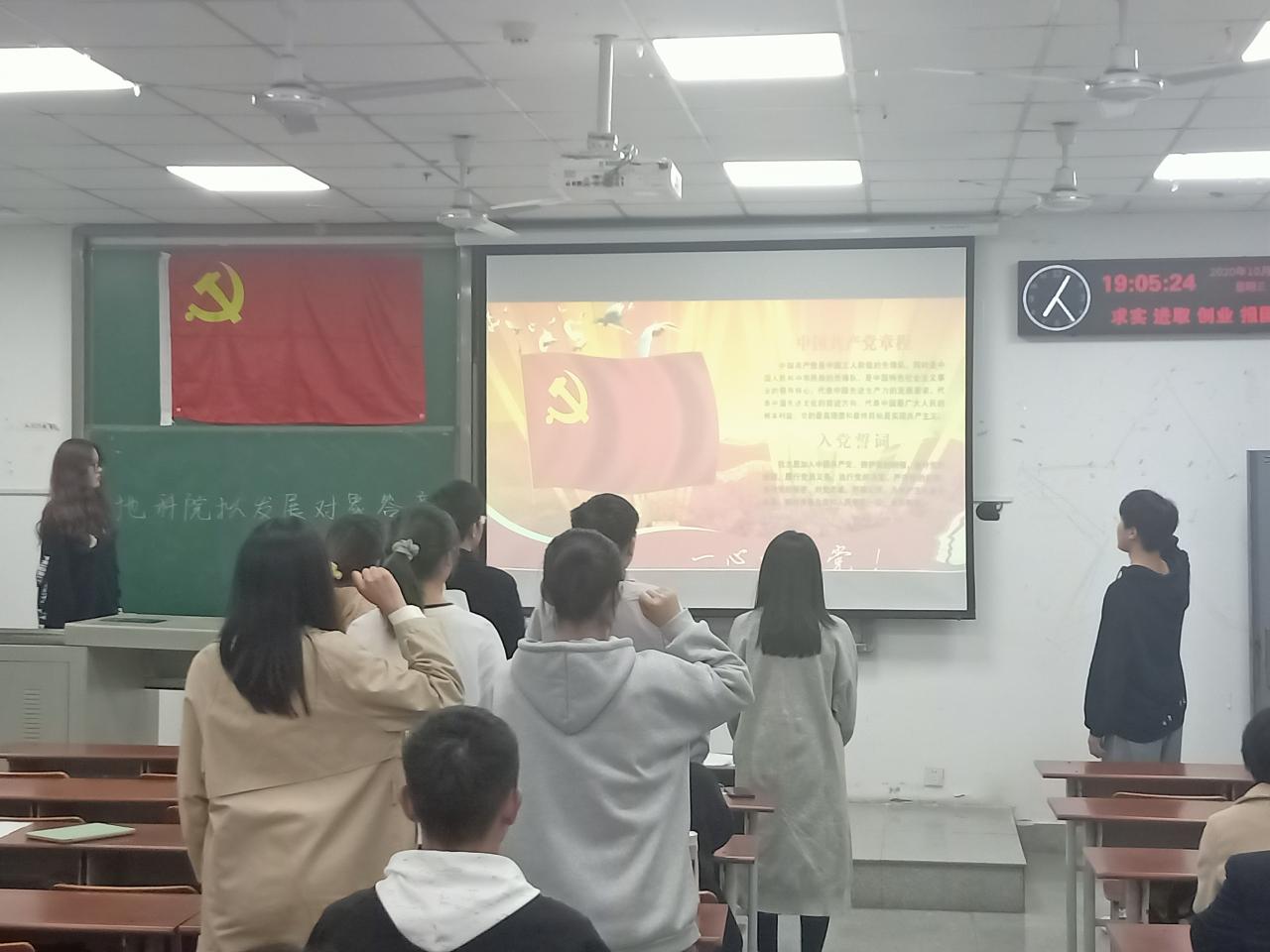 本次大会分为三项。会议第一项,全体人员起立,奏唱国歌。会议第二项,全体党员重温入党誓词。第三项为正式答辩,每位参加答辩的同学就个人思想品德、学干经历、学习成绩、获奖情况等方面进行了全面展示。整个答辩过程,同学们既展示了自己的风采与成绩,也真诚的表达了对党的向往和希望早日加入党的殷切期望。与此同时,答辩也为同学们提供了相互学习的机会,大家在答辩中认识到了自己不足与差距,进一步明确了努力方向与目标,更加坚定了继续向党组织靠拢的决心与信心。