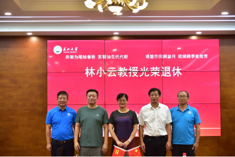 学院副院长胡忠贵代表学院向林小云教授颁发了承载着全体师生敬意与祝福的荣休纪念牌。副院长、工会主席李功权代表学院工会献上了鲜花,表达对她退休生活的美好祝愿。