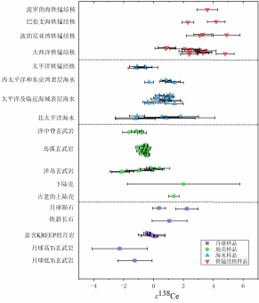 图2 不同地质体中的ε138Ce值