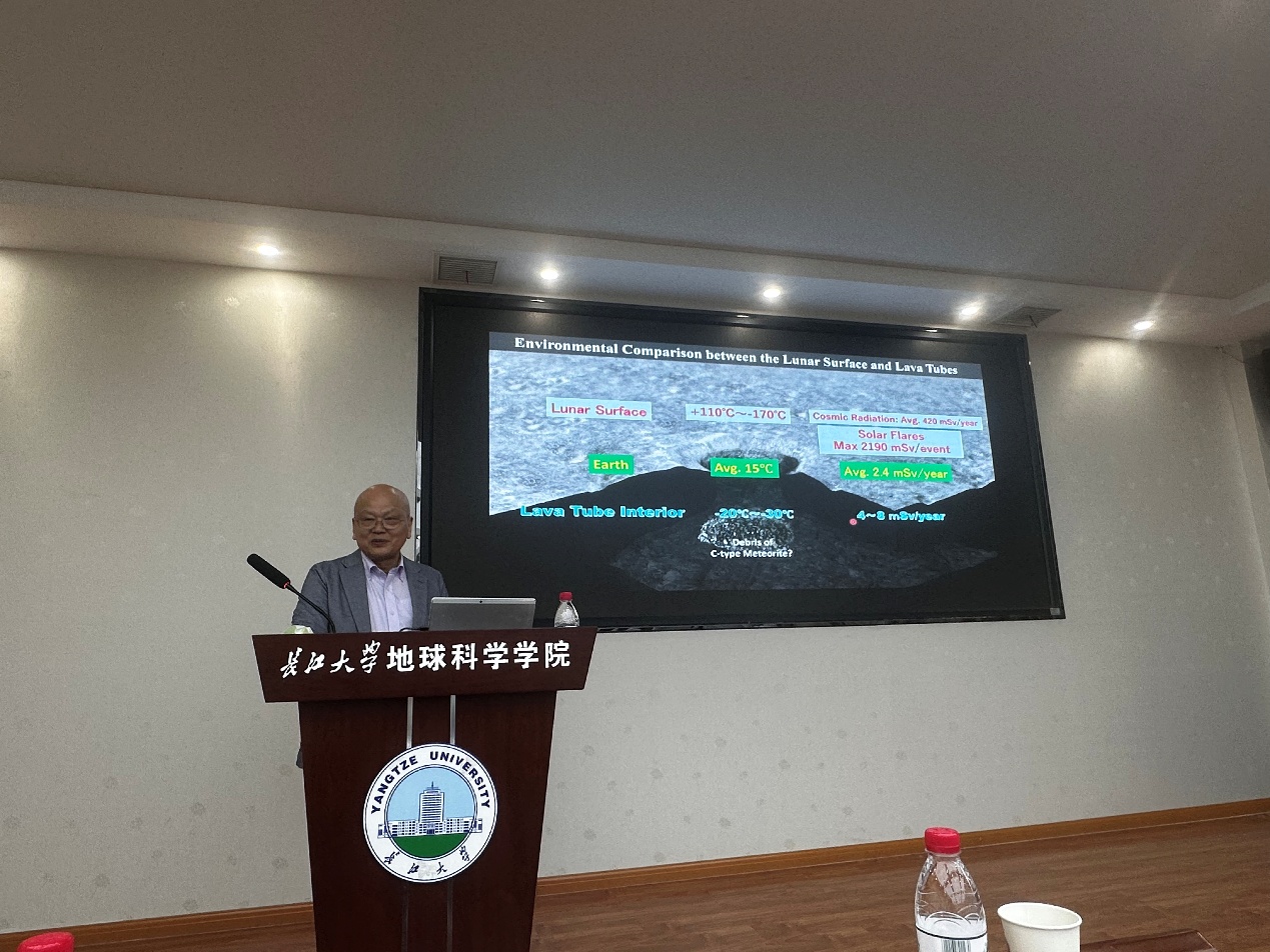 报告会上,Eizo Nakamura教授围绕地外资源的原位利用这一主题,详细介绍了自2020年日本“隼鸟号”探测器将近地小行星“龙宫”样品带回地球以来,近5年间的最新科研成果。在龙宫样品被带回地球前,Nakamura教授带领其团队做了全面的实验测试准备工作,实现了从原位高精度元素地球化学分析到全岩同位素测试的全面突破,建立了地球及地外物质综合分析实验室(CASTEM),突破了传统的学科界限,从高精度地球化学测试扩展到材料科学的应用上。基于此平台,Nakamura教授团队揭示了碳质小行星中挥发分及有机质的来源,这些生命必须元素也为地球生命起源及其宜居性演变提供了重要指导意义。报告最后,Nakamura向听众展示了利用“龙宫土”种植出的蔬菜,并大胆假设在近地碳质小行星上的蔬菜大棚建设。这场兼具科研与科普性质的报告成功吸引了学院师生的兴趣,报告持续了近90分钟。