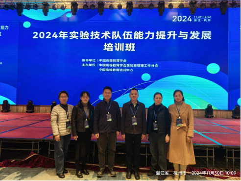 (通讯员:高达、丰勇)为进一步加强高水平专业化实验技术队伍建设,提升实验室管理能力、实验技术能力与服务能力,为学院学科建设、人才培养及教学科研提供强有力支撑,11月29日~12月1日,实验中心丰勇、高达、高洁、辛长静、胡九珍和徐艳霞等6名教师赴浙江杭州参加“2024年实验技术队伍能力提升与发展培训班”。