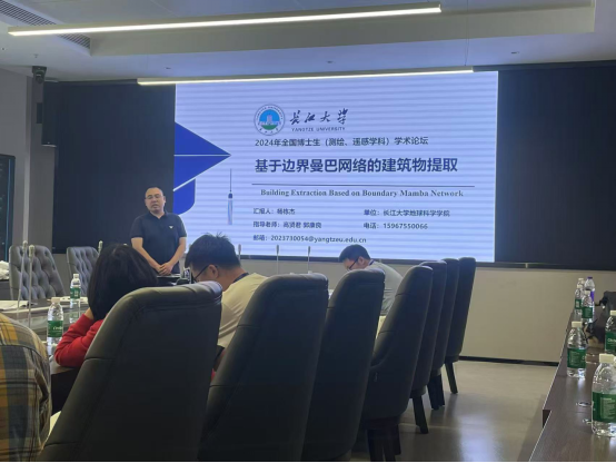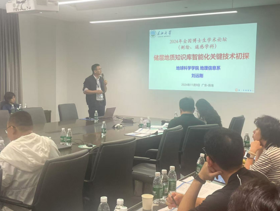 本次论坛由国务院学位委员会测绘与遥感学科评议组主办,中山大学和北京师范大学联合承办,旨在促进全国测绘遥感领域的博士生培养,加强学术界与产业界的沟通与合作,共同探讨和解决学科发展中的关键问题。参会期间,刘远刚副教授、相龙伟副教授和博士生杨栋杰分别做了题为“储层地质知识库智能化关键技术初探”、“基于 Sentine1-2 卫星影像提取水体的一种新水体指数”、 “基于边界曼巴网络的建筑物提取”的口头报道,并与其他参会代表展开热烈讨论。