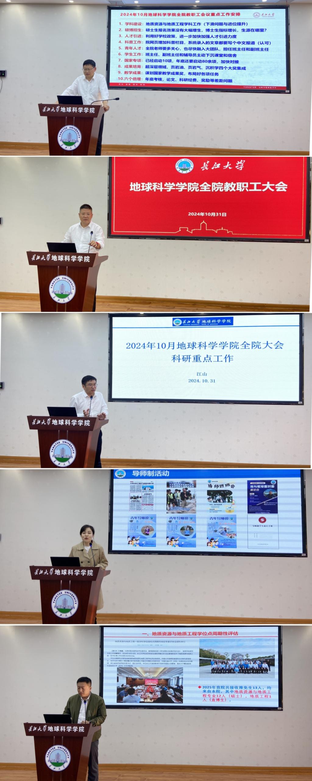 常务副院长吴楠对地质资源与地质工程学位点周期性评估情况进行了通报,对2025年硕博士研究生招生、硕博士学位授予和研究生教学期中检查等相关工作进行了安排,他要求全体研究生导师要精心育才,要大力高质量培养研究生,积极支持研究生参加学术活动,努力提高研究生学术水平。