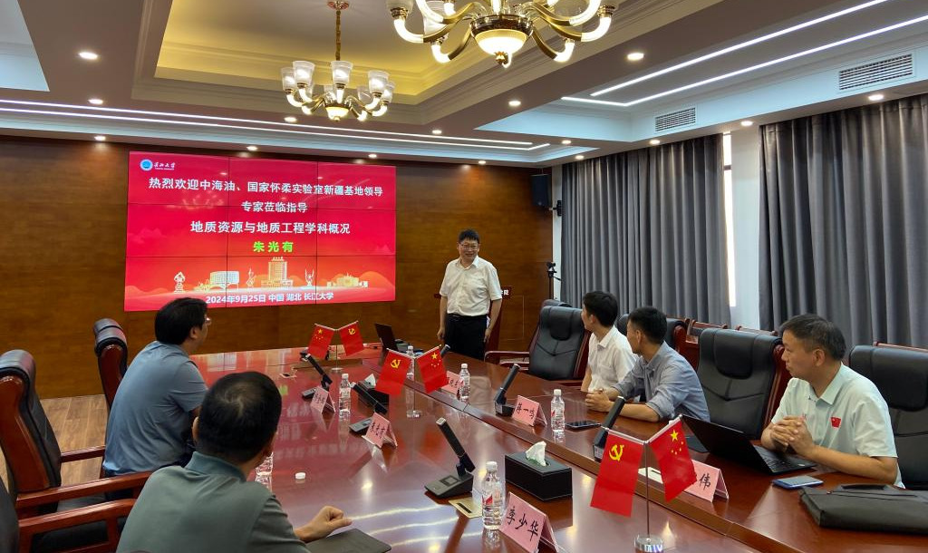 (通讯员 韩静)2024年9月25日,中海石油(中国)有限公司上海分公司研究院党委书记、院长蒋一鸣、国家怀柔实验室新疆研究院人力资源处高级主管周晓东、科研团队骨干蒋宏伟来院交流访问,座谈交流会在武汉校区石油科技大楼C201会议室举行,院长朱光有、院党委书记杨全辉和李少华教授出席会议,座谈会由院长朱光有主持。