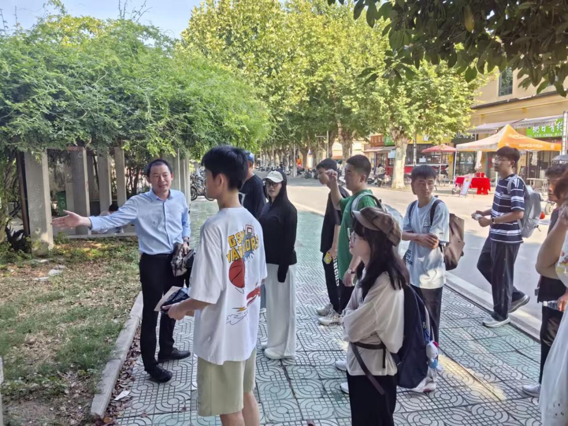 图7 班主任印森林老师带领学生参观校园