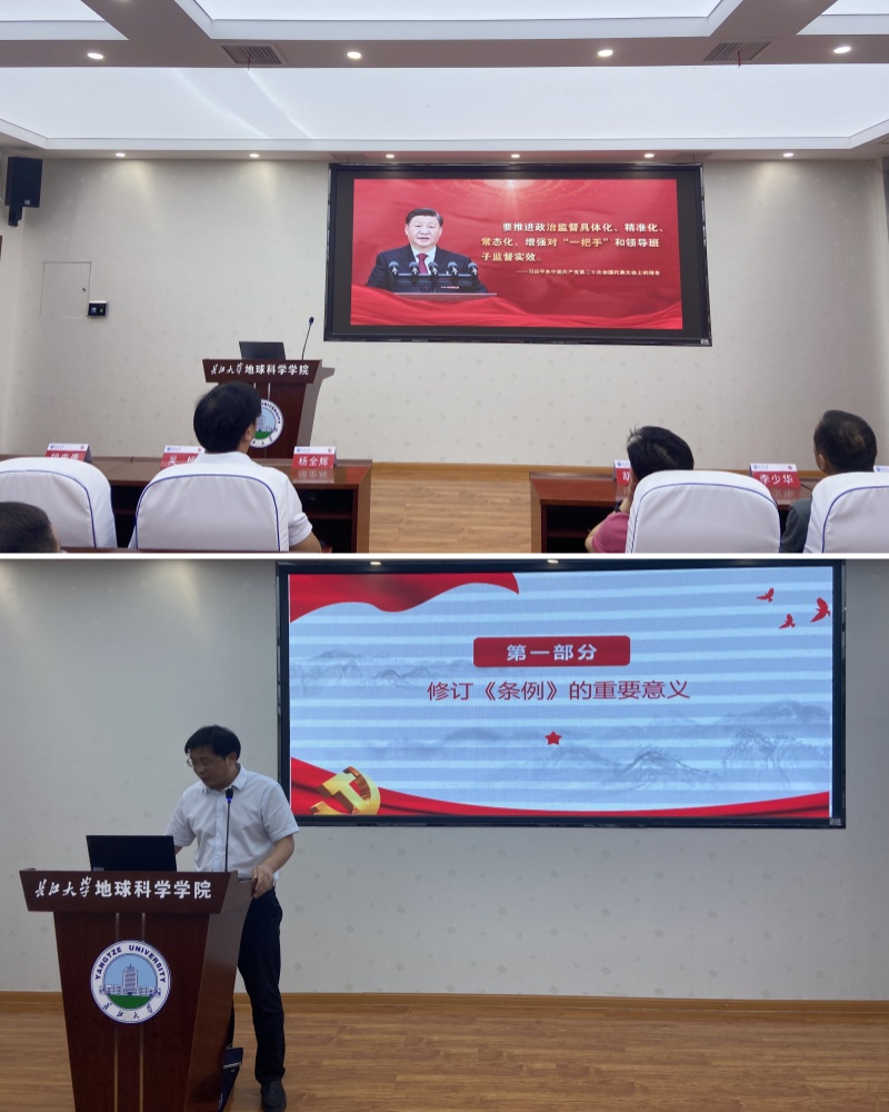 会议第二阶段,学院党委书记杨全辉为全院教职工讲党课,向全院教职工解读了《中国共产党纪律处分条例》,带领全院教职员工进行政治理论学习,组织全院教职工观看警示教育片,要求党员领导干部、全院教职工认真学习《条例》,做到学纪、知纪、明纪、守纪。