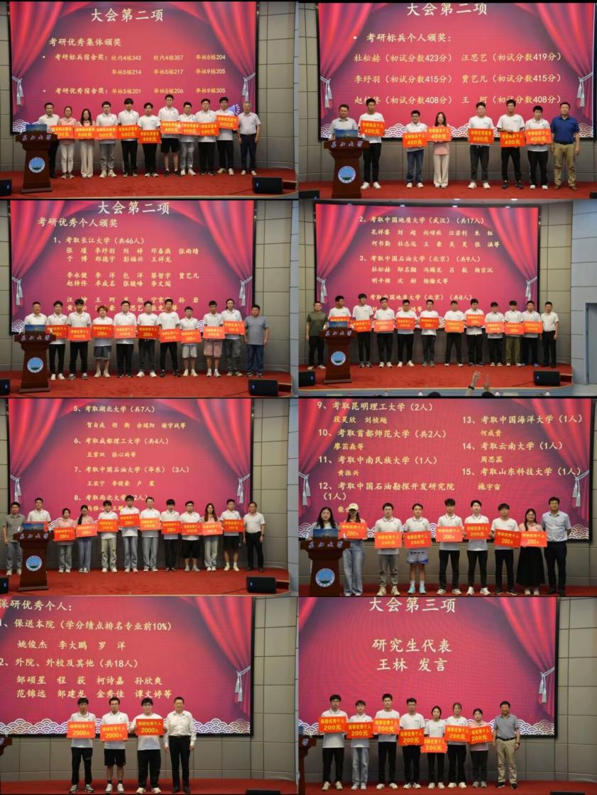 副院长胡忠贵宣读《澳门十大网投正规官网平台2024年考研表彰文件》,6个考研标兵宿舍、3个考研优秀宿舍、6个考研标兵个人、85个考研优秀个人代表、12个保研优秀个人代表依次上台领奖。