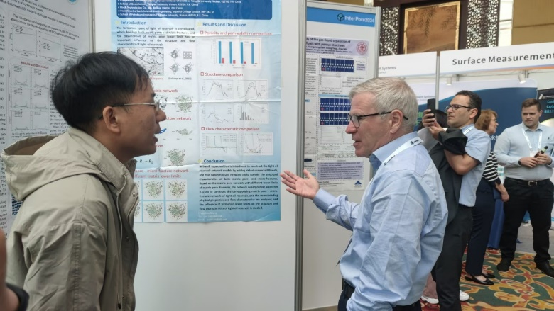 此次会议主题为“多孔介质与生物学”,共设置24个分会场,超过400余位学者作学术报告,展示230多个学术海报,共同探讨多孔介质领域的最新进展,涵盖了多孔介质在能源、环境、生物、农业、材料科学等领域的理论、应用及前沿技术。在为期四天的会议中,十大网投正规官网代表团成员积极参与了各种学术活动。其中,博士生闫康和朱朝彬就其在多孔介质研究领域的最新成果进行了题为“Seepage Model of Conglomerate Based on Deep Neural Network and Finite Element-Discrete Element Coupling”和“Differential Mechanisms of Acidic Fluid-induced Dissolution in Ahe Formation Reservoirs across Various Locations within the Northern Structural Zone of theKuqaDepression”的口头报告,并与现场学者进行了深入交流。其他参会代表也通过会后讨论、海报交流等方式展示他们的研究成果,并与来自世界各地的专家学者进行了深入的学术交流。