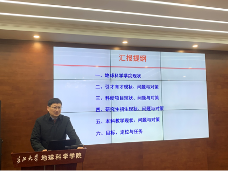 院长朱光有从澳门十大网投正规官网平台引才育才、科研项目、研究生招生,本科教学等方面的现状、问题与对策以及学院发展目标、定位与任务六个方面进行了详细汇报。
