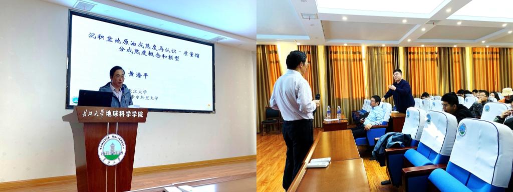 报告的第二阶段,江山副院长、石油系殷杰老师及与会学生围绕报告内容并结合自身科研工作同黄教授展开深入的探讨。最后,江山副院长总结到,本次报告提到的质量馏分成熟度概念具有高度的创新性,将对当前深层油气勘探实践中的成藏史分析和油气源对比工作中具有深刻的理论指导意义,同时也有望在工业界产生广阔的应用前景。