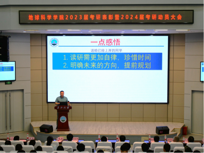2020级研究生代表张广斌发言,他认为在长大读研是人生最正确的选择之一,导师和学院指导与培养让他硕果累累。导师代表苏奥博士鼓励大家:“考研的路上,可能会遇到各种各样的困难和挑战。只要有梦想有决心,就一定会战胜这些困难和挑战。”副院长吴楠教授为同学们分析了2024年考研局势,勉励大家要更加自律、进一步明确发展方向,做好时间规划。