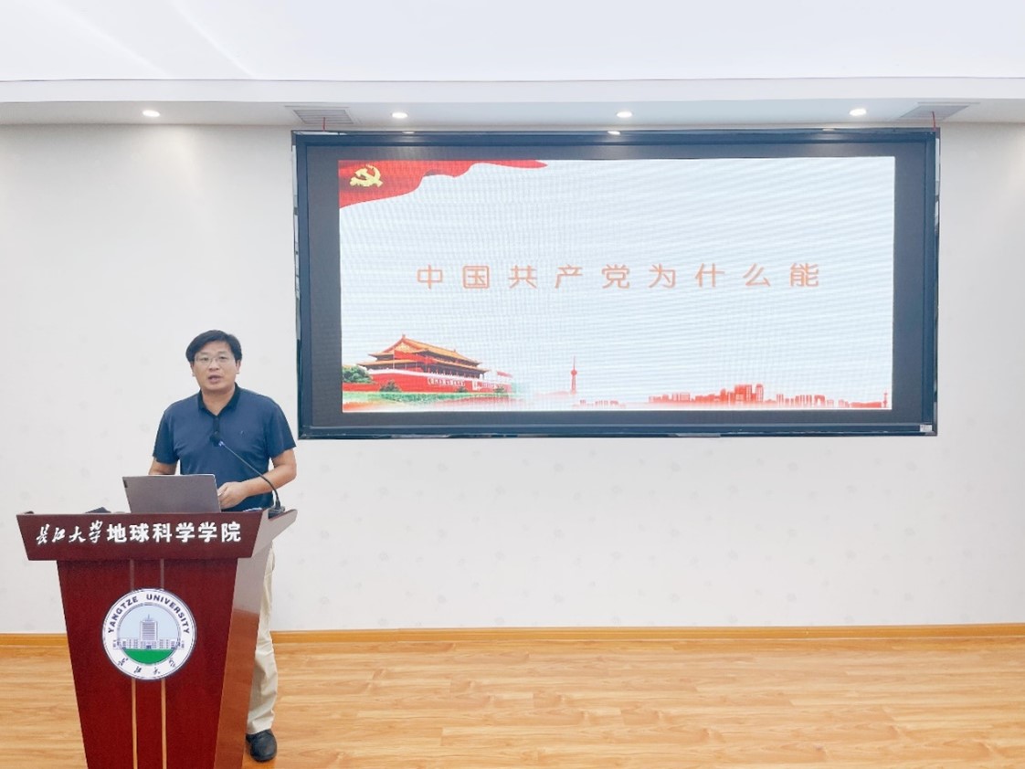 会议最后,全院教职工进行了集中政治理论学习,党委书记杨全辉结合学院工作实际,以“中国共产党为什么能”为题,给全院教职工上了一堂专题党课。