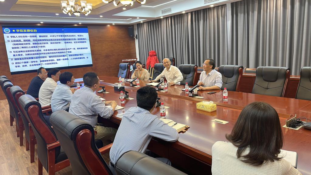 院长胡明毅汇报了近年来学院在人才培养、学科建设、科学研究和社会服务方面的情况,对学院的发展优势和存在的问题进行了详细汇报。