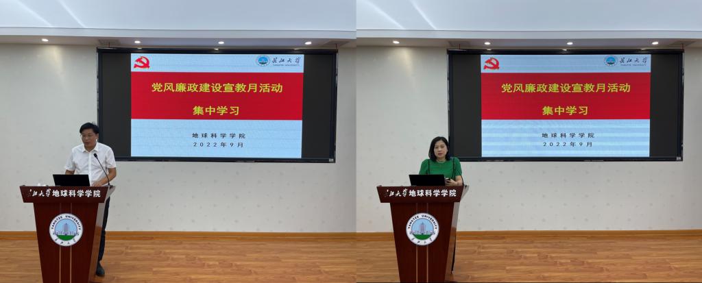 会议第二阶段,党委书记杨全辉以《深入推进清廉地科建设 永葆清正廉洁政治本色》为题为全体教职工讲授专题廉政党课,并做了纪法宣讲宣传,重点学习了《中国共产党纪律处分条例》;党委副书记任倩结合近期国内高校的典型案例及发生在身边的典型案例,深入开展了以案说德、说纪、说法、说责的警示教育,要求全体教职工要从鲜活案例中吸取教训,要知敬畏,存戒惧,筑牢防线,守住底线,远离红线。