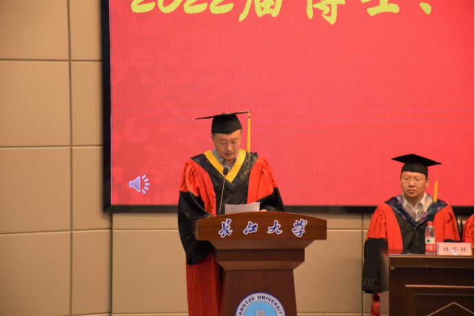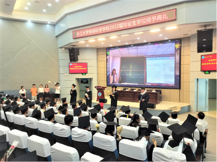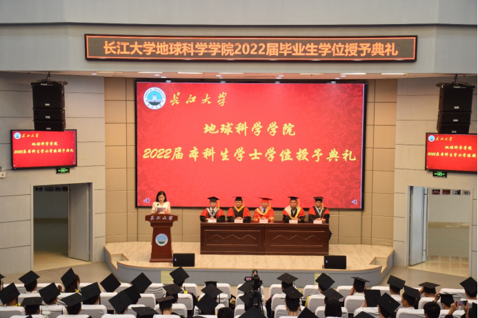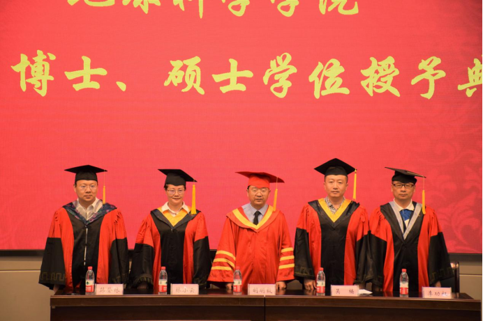 在热烈的掌声中,院长胡明毅、副院长吴楠教授、副院长韩登林教授、石油系林小云教授、地质系胡光明教授、石油系陈轩副教授、地信系李功权副教授、地科系江山副教授等八位导师先后分别列席毕业生学位授予仪式并上台就坐。出席毕业生学位授予仪式的还有地科学院党委书记杨全辉、副院长丁四兵、党委副书记任倩,以及各年级辅导员,他们共同见证这一难忘时刻。