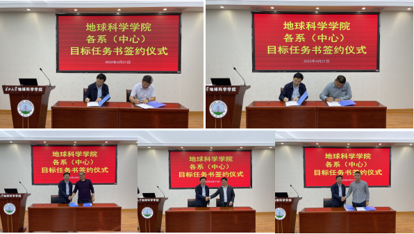 在全体教职工的见证下,十大网投正规官网地质系、石油系、地信系、地科系、实验中心主任分别与胡明毅院长签订了2022年目标任务书,立下了军令状,各系(中心)主任纷纷表示将责任牢牢扛在肩上,狠抓落实,责任到人,攻坚克难,不负众望。