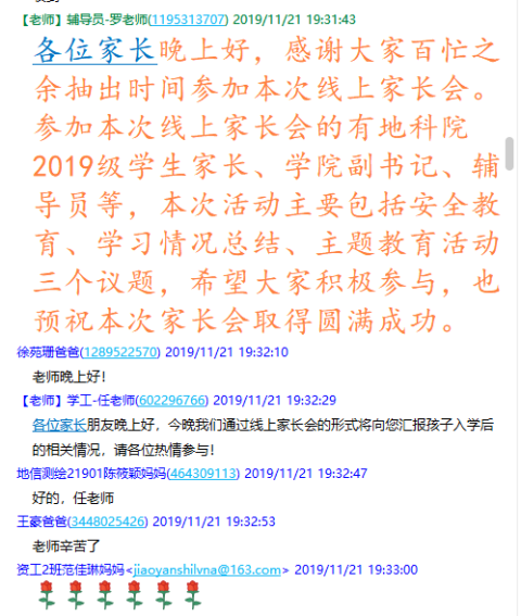 通过本次线上家长会的召开,希望能够引起家长对学生安全问题、学习情况、成长过程的重视,配合学校共同做好大学生的教育管理工作,确保学生渡过安全健康、充实美好的大学时光。