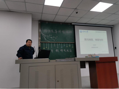 在地信系的青年教师交流会上,张方利老师首先介绍了地理信息专业,使同学们加深了对地理信息科学的认识和理解。张老师幽默的言语和精彩的介绍赢得现场同学们的阵阵掌声。接着,张老师向同学们讲解了地信专业所需的各项专业技能,勉励大家要把地信与自己“融合”,早日成为一个合格的“GIS者”。在与同学们交流的最后,张方利老师强调:“不论我们做什么,只要学会坚持,再难的事也会变得简单。”