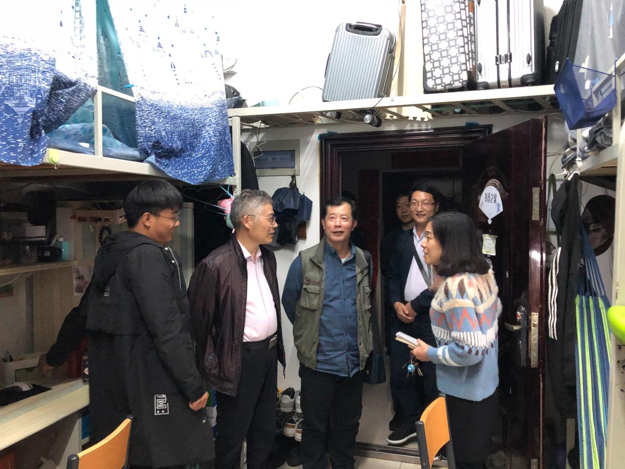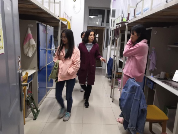 走访过程中,学院领导与同学们进行了亲切的交流,对学生的学习、生活等方面情况进行了解,关注学生思想动态,对学生宿舍卫生、文明建设等情况进行了深入了解。各位老师走访过程中不断提醒同学们务必注意财产安全、消防安全、人身安全,保持宿舍环境卫生,严禁私自外住、夜不归宿等行为;勉励同学们勤奋学习,要做好人生规划和考研的问题;针对走访中发现违规行为和问题,提出了整改要求,及时排除安全隐患;同时,对存在寝室设施损坏问题的寝室进行登记,在查寝工作结束后,统一汇总报修,保证每位同学都有一个优雅舒适的寝室环境。