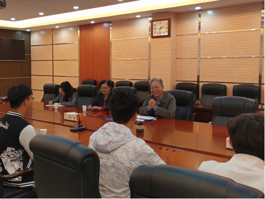 随后,张玉清校长与到会的同学进行深入的交流。“大家不要拘谨,我们就随便聊聊天,其实我也算是你们的师兄。”张校长平易近人的开场语,瞬间拉进了师生间的距离。张校长希望通过此次座谈会深入了解学同学们的学习情况与思想动态。与会同学分别发表了自己的想法,资卓21701班的陆相吉同学说到:“我在大一的时候有幸参加了学校与成都理工大学合作开展的峨眉山联合地质实习,收获颇丰,但是后来这样的实习就没有了,如果可以的话希望这种实习能够再多一点。”刘昊同学就学院网站的宣传工作提出了自己的建议,希望学院能多开辟官微、官方公众号,以同学们喜闻乐见的形式宣传推广学院的新闻,加强同学们对学院工作的了解度。地信21802班王建生同学结合马上要开展的校区运动会,从同学们筹备工作方面提出了自己的建议,并表态力争带领地科的运动员们在即将到来的运动会上赛出优异成绩……听完同学们的发言,张校长就同学们关心的问题,结合自己当初的大学生活与刚参加工作时的有趣见闻,一一解答了同学们心中的困惑。
