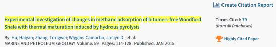 根据ESI最近更新的数据显示,地科学院胡海燕教授2015年发表在国际期刊Marine and Petroleum Geology的论文“Experimental investigation of changes in methane adsorption of bitumen-free Woodford Shale with thermal maturation induced by hydrous pyrolysis”成为高被引ESI论文,这是以澳门十大网投正规官网平台为第一单位、地科学院教师为第一作者的首篇ESI论文。截至目前,被引用79次。该文主要揭示了随着有机质成熟度增加,富有机质页岩中纳米孔的演化规律和页岩吸附机理。页岩气是近十几年来发生在油气工业界的一场伟大变革,改变了世界的油气格局。页岩在我国南方广泛分布,具备良好的页岩气前景。中国石化在焦石坝、中国石油在长宁-威远地区已实现工业化开采,每年产页岩气近百亿立方米。湖北宜昌和恩施地区大规模页岩气勘探正在展开。