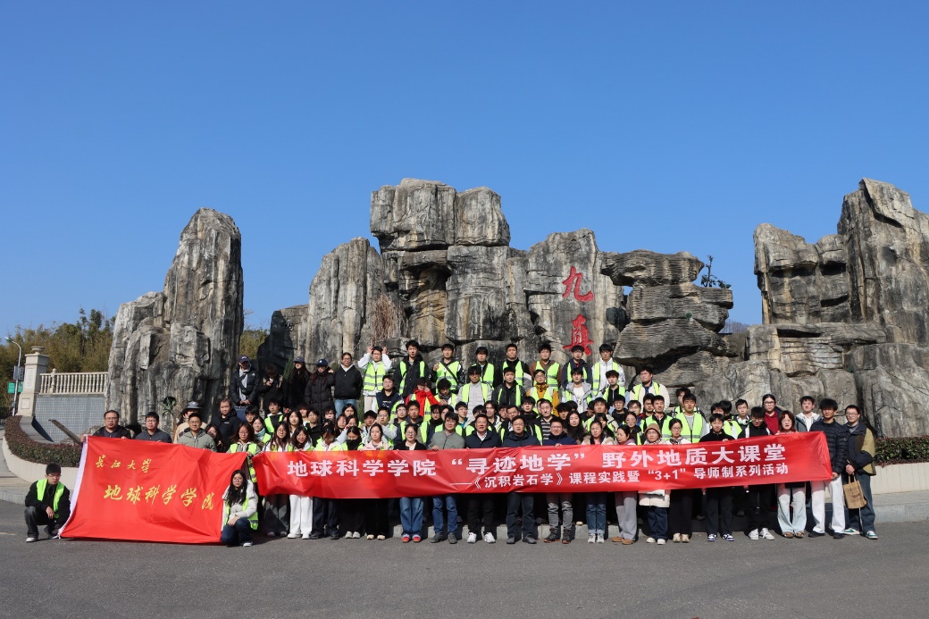 (通讯员:高达)2025年12月26日,岁末冬初,晴空万里,九真山间腊梅暗香浮动。在这充满希望的冬日里,澳门十大网投正规官网平台实验中心党支部联合学院团委、石油系党支部、地质系党支部,携手沉积岩石学教学团队,共同组织了一场别开生面的“寻迹地学”野外实践教学与联合主题党日活动。本次活动中,由胡忠贵、高达、赵娥、陈鹏、罗进雄等14名党员教师带领资源勘查工程专业24级本科生及沉积学方向研究生共100余名同学,走进九真山,开展了一场将野外地质考察、课程思政教育、教学团队建设与党支部主题党日活动深度融合的生动实践。