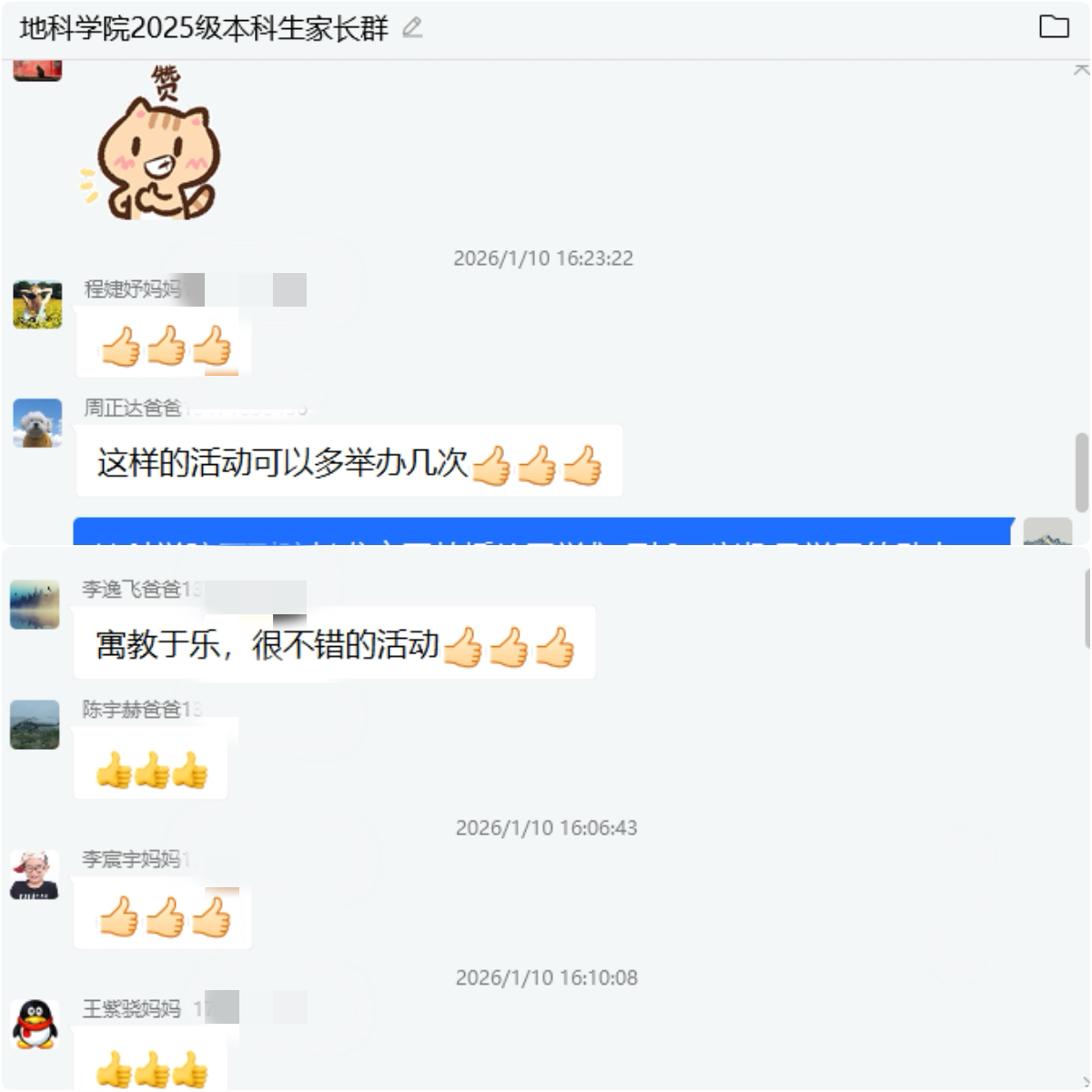 参赛同学纷纷表示在比赛中受益匪浅。地质12504班刘英华说:“比赛不仅是知识的较量,更是思维的碰撞和团队的磨合。大家在竞争中学习,在协作中成长,过程紧张又充实!”比赛现场照片发布到25级家长群后,家长们纷纷点赞,觉得活动寓教于乐,希望多开展几次。
