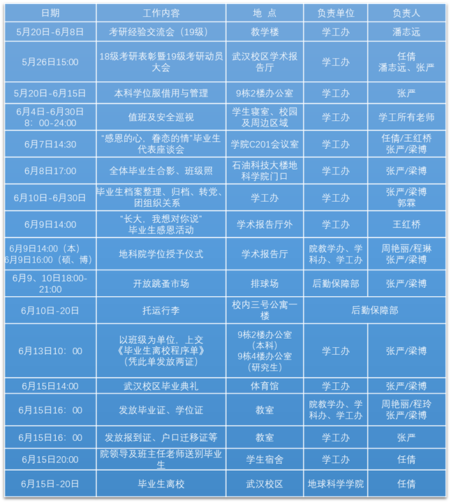 根据学校《关于做好2022届毕业生离校工作的通知》,结合十大网投正规官网实际情况,地科学院毕业生离校日程工作安排如下: