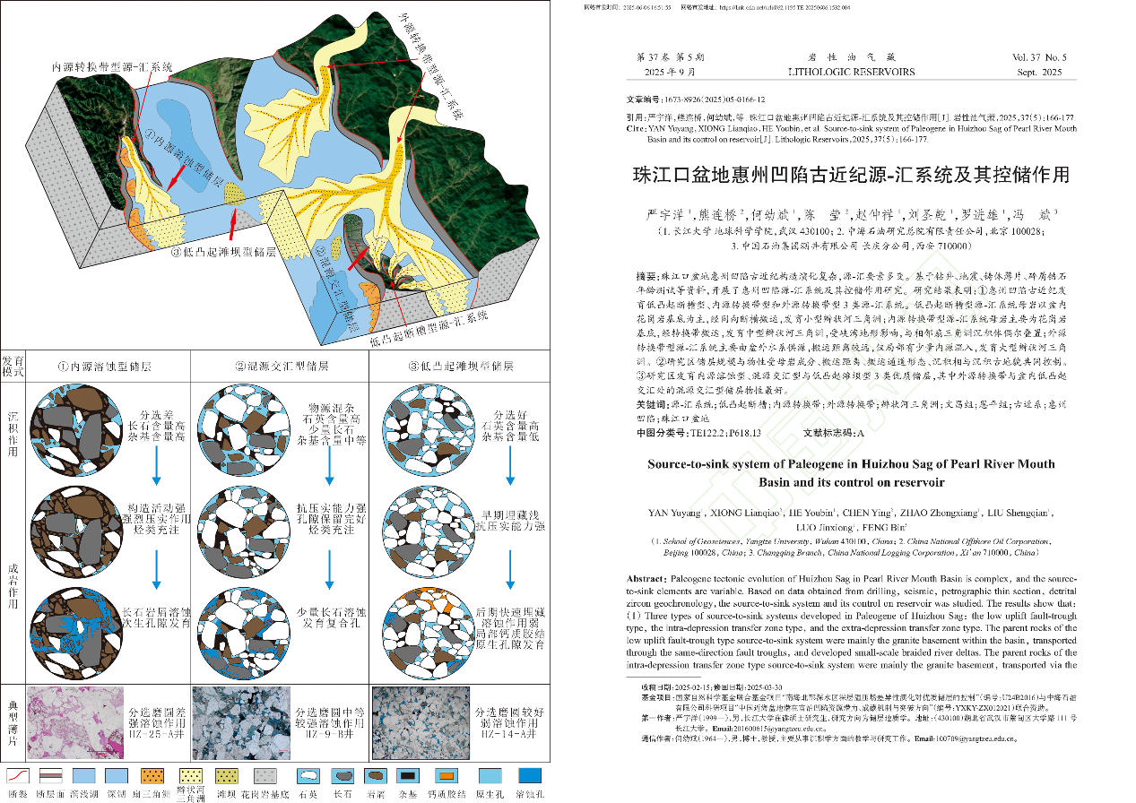 图1 惠州凹陷古近系文昌组和恩平组优质储层发育模式图(左)与论文首页(右)