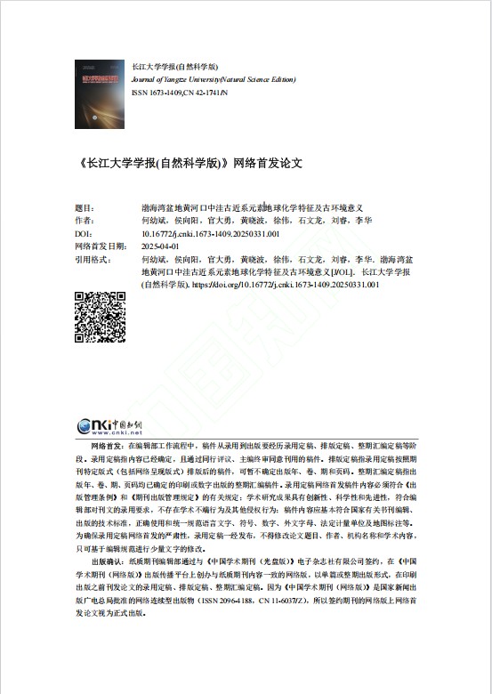 (通讯员 侯向阳)澳门十大网投正规官网平台地质学专业2022级硕士研究生侯向阳在中文期刊澳门十大网投正规官网平台学报(自然科学版)发表题为“渤海湾盆地黄河口中洼古近系地球化学元素特征及意义”的学术论文。澳门十大网投正规官网平台为第一署名单位,导师何幼斌教授为第一作者,硕士研究生侯向阳为论文通讯作者。