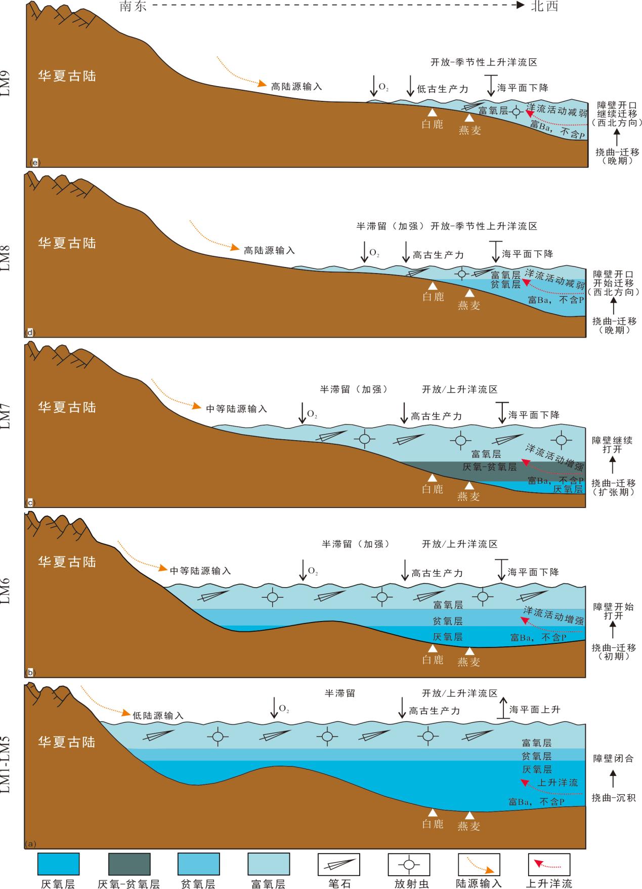 图1 渝北地区龙马溪组不同沉积期内有机质富集模式