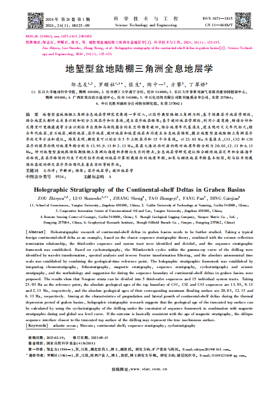 澳门十大网投正规官网平台邹志友博士联合研究团队,在《科学技术与工程》期刊上发表了题为“地堑型盆地陆棚三角洲全息地层学”的研究文章。该研究聚焦于地堑型盆地陆棚三角洲的全息地层学特征,主要研究内容及成果如下: