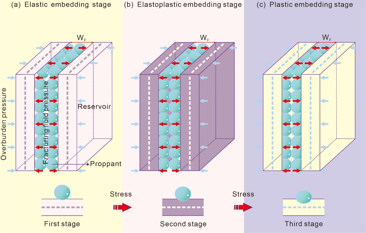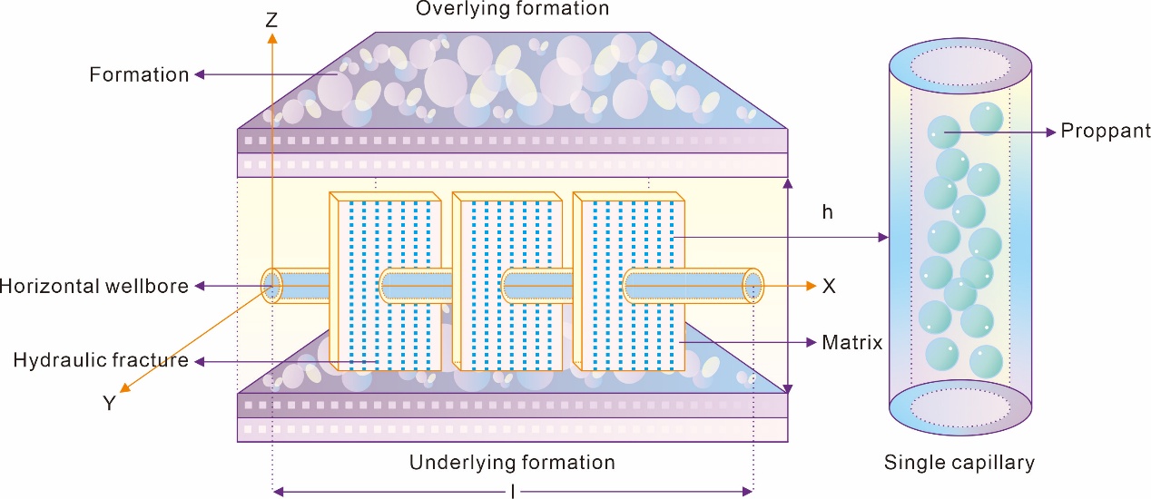 该论文以低渗气藏为对象,针对实际生产中,不同支撑剂变形阶段嵌入深度不确定和裂缝闭合导致的裂缝宽度难以计算,最终影响产能计算精准度的问题。首先,考虑基质区的应力敏感性,基于渗流理论、流体力学,分别建立了基质区应力敏感性模型、基质区流体流动模型、压裂区支撑剂嵌入模型、压裂区流体流动模型,并基于上述模型综合构建了考虑支撑剂嵌入的低渗气藏压裂水平井产能预测模型。其次,利用耦合求解法对该模型的产量进行了求解。最后,根据所建模型,分别对低渗气藏的应力敏感性、导流能力影响因素,产能影响因素三个方面进行了分析与讨论。结果证明,低渗气藏的基质区有较强的应力敏感性。在压裂设计中,需要综合考虑裂缝参数。压裂后,为维持产量的稳定释放,需选取粒径适宜的支撑剂,优化铺设层数。以达到指导压裂设计,维持压裂后效果,精准预测低渗气藏压裂水平井产量的目的。对低渗气藏产能的有效、稳定释放具有重要意义。