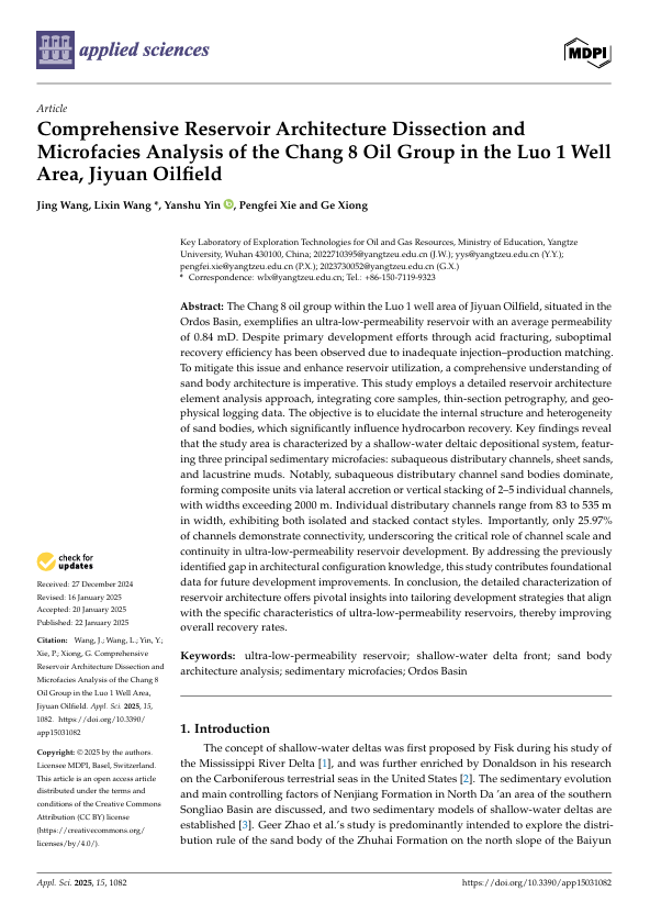 澳门十大网投正规官网平台硕士生王婧在SCI收录期刊《Applied Sciences》上发表题为“Comprehensive Reservoir Architecture Dissection and Microfacies Analysis of the Chang 8 Oil Group in the Luo 1 Well Area, Jiyuan Oilfield”的研究论文。澳门十大网投正规官网平台为论文第一署名单位,王立鑫老师为第一通讯作者。