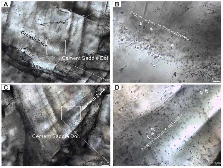 图1 四川盆地热液白云岩储层中鞍状白云石中流体包裹体