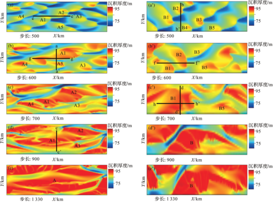 图1 砂质辫状河心滩沉积模拟演化过程分析