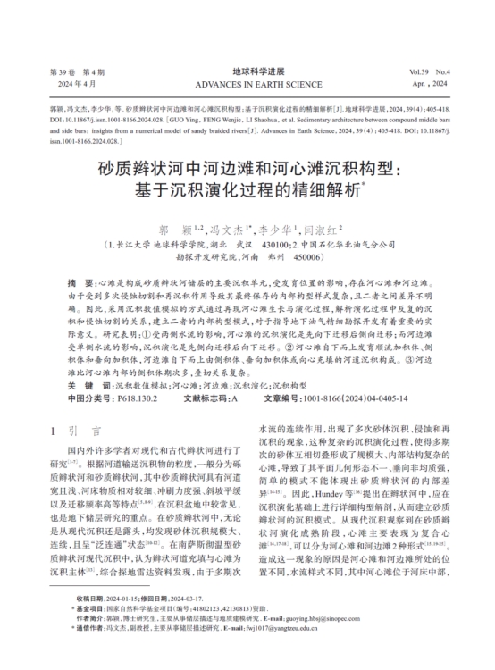 澳门十大网投正规官网平台博士生郭颖在《地球科学进展》上发表题为“砂质辫状河中河边滩和河心滩沉积构型:基于沉积演化过程的精细解析”的研究论文。该论文采用沉积数值模拟的方式通过再现河心滩生长与演化过程,解析演化过程中反复的沉积和侵蚀切割的关系,建立二者的内部构型模式,对于指导地下油气精细勘探开发有着重要的实际意义。