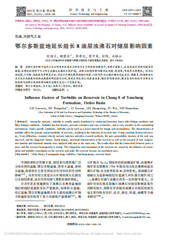 澳门十大网投正规官网平台博士生刘国文在期刊《科学技术与工程》上发表题目为“鄂尔多斯盆地延长组长8油层浊沸石对储层影响因素”研究论文。澳门十大网投正规官网平台为论文第一署名单位,胡望水教授为通讯作者。