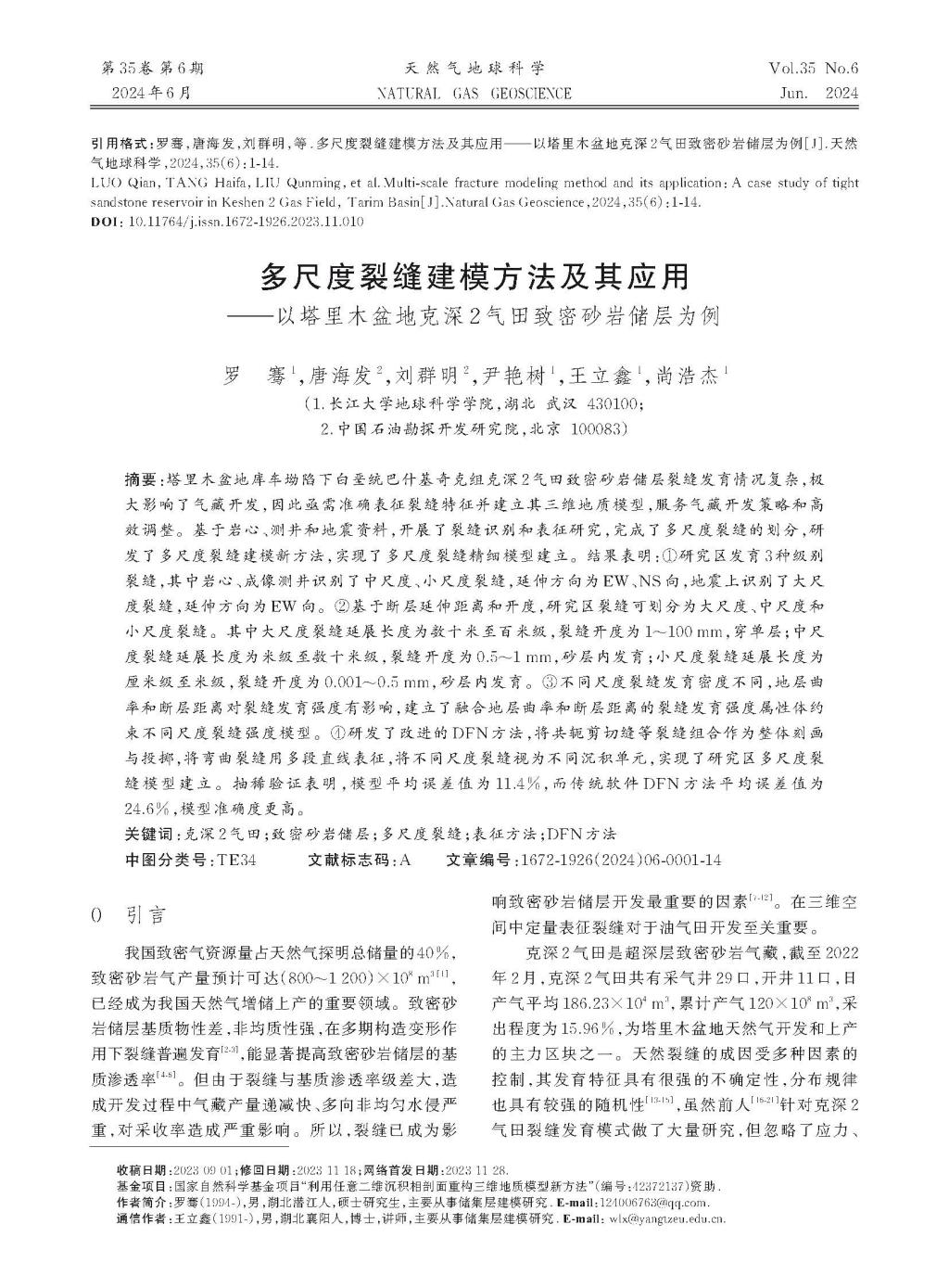 澳门十大网投正规官网平台地质学研究生罗骞在《天然气地球科学》上发表了题为“多尺度裂缝建模方法及其应用——以塔里木盆地克深2气田致密砂岩储层为例”的研究论文。