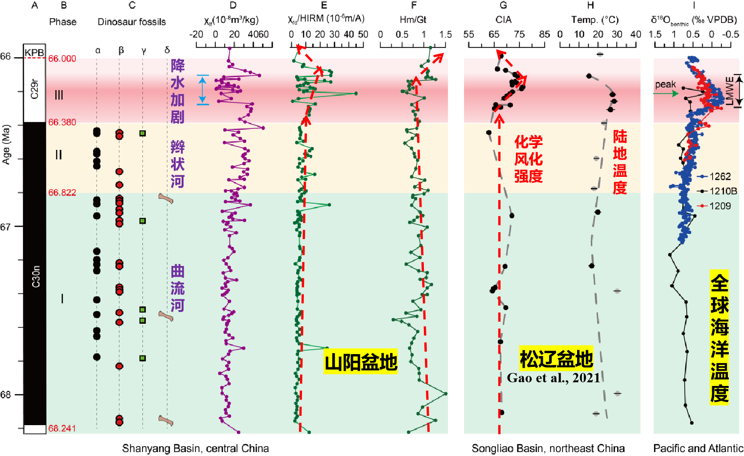 图1 山阳盆地恐龙化石记录与松辽盆地以及全球海相气候记录(Han etal., 2024)