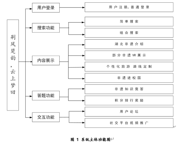 该平台设计功能包括用户功能(登陆注册)、搜索、湖北非遗内容展示:展现形式包含文字、图片、视频、以及部分非遗项目的VR展示。旅游路线规划:结合学生专业知识,使用WebGIS技术,将地图信息发布到网页上。用户可以根据兴趣点筛选旅游景区、指定旅游路线。趣味答题:为了让更多人了解并传承非遗文化,用户可以通过参与趣味答题学习到相关知识,并与网友PK。最后,该平台调用了高德API,可以根据用户选择的路线进行实时的导航。
