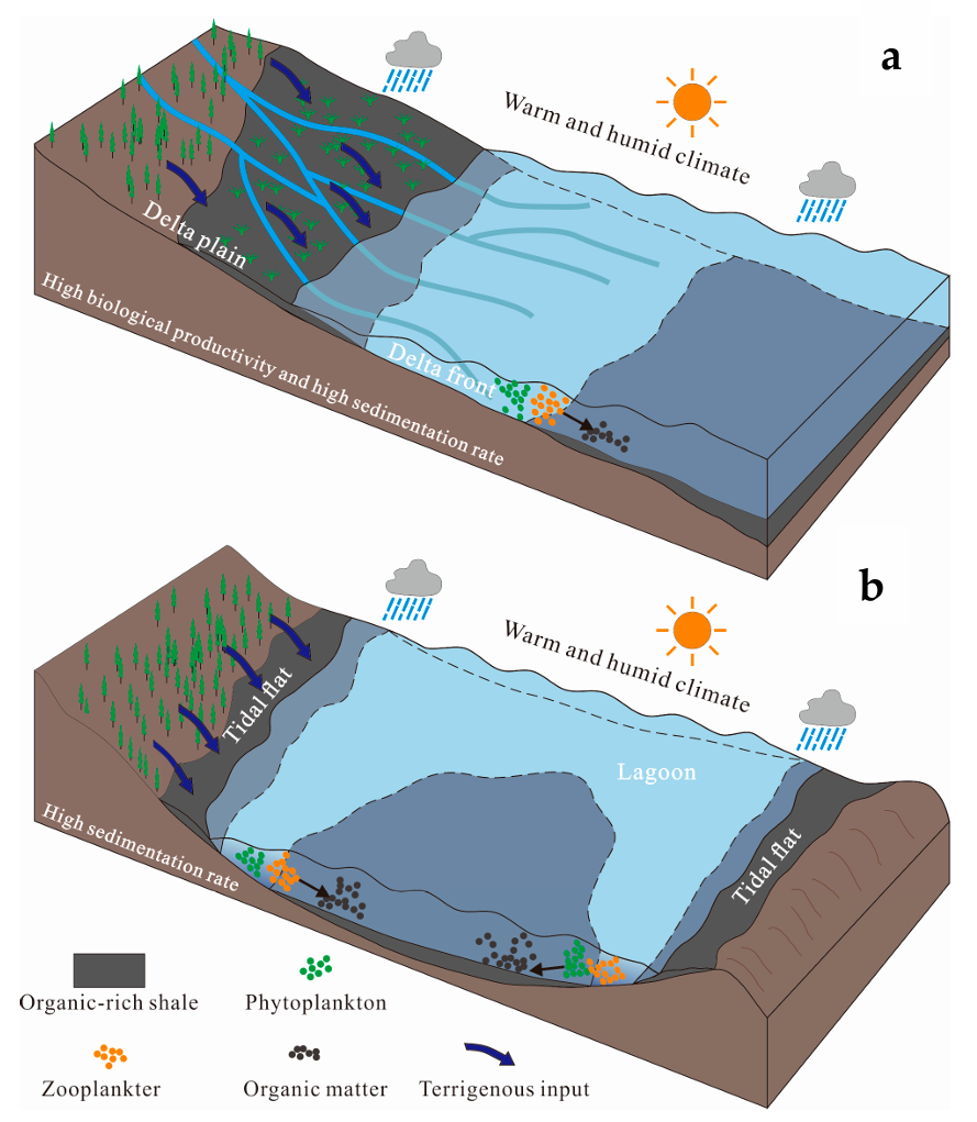 图1.黔北海陆过渡相页岩有机质富集模式