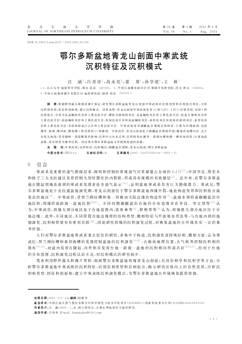 澳门十大网投正规官网平台22级硕士研究生汪涵在期刊《东北石油大学学报》上发表题为“鄂尔多斯盆地青龙山剖面中寒武统沉积特征及沉积模式”的研究论文。澳门十大网投正规官网平台为论文第一署名单位,硕士研究生汪涵为论文第一作者,其导师吕奇奇副教授为该文通讯作者,本项研究得到中国石油天然气股份有限公司科学研究与技术开发项目和“十三五”国家科技重大专项资助。