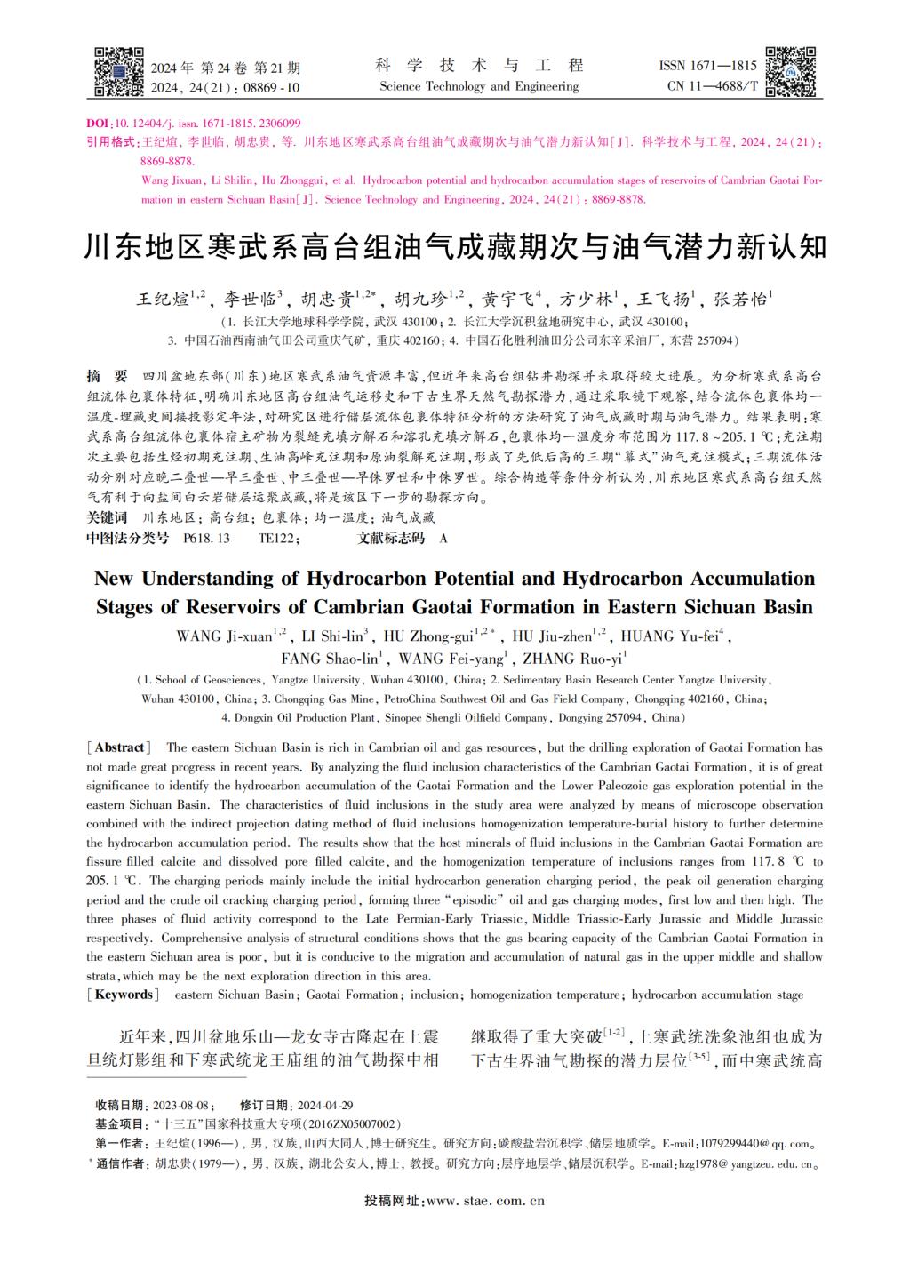 澳门十大网投正规官网平台20级硕士研究生王纪煊在期刊《科学技术与工程》上发表题为“川东地区寒武系高台组油气成藏期次与油气潜力新认知”的研究论文。澳门十大网投正规官网平台为论文第一署名单位,硕士研究生王纪煊为论文第一作者,其导师胡忠贵教授为该文通讯作者,本项研究得到“十三五”国家科技重大专项资助。