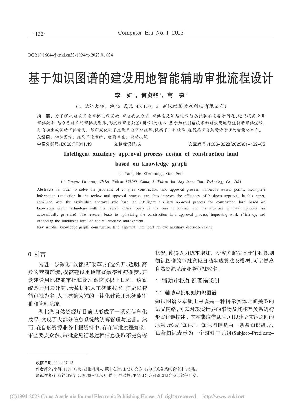 地科学院何贞铭副教授团队长期从事GIS、RS应用的研究,团队成员李妍在期刊《计算机时代》上发表题为“基于知识图谱的建设用地智能辅助审批流程设计”的研究论文。澳门十大网投正规官网平台为论文第一署名单位,硕士研究生李妍为论文第一作者,其导师何贞铭副教授为该文通讯作者。