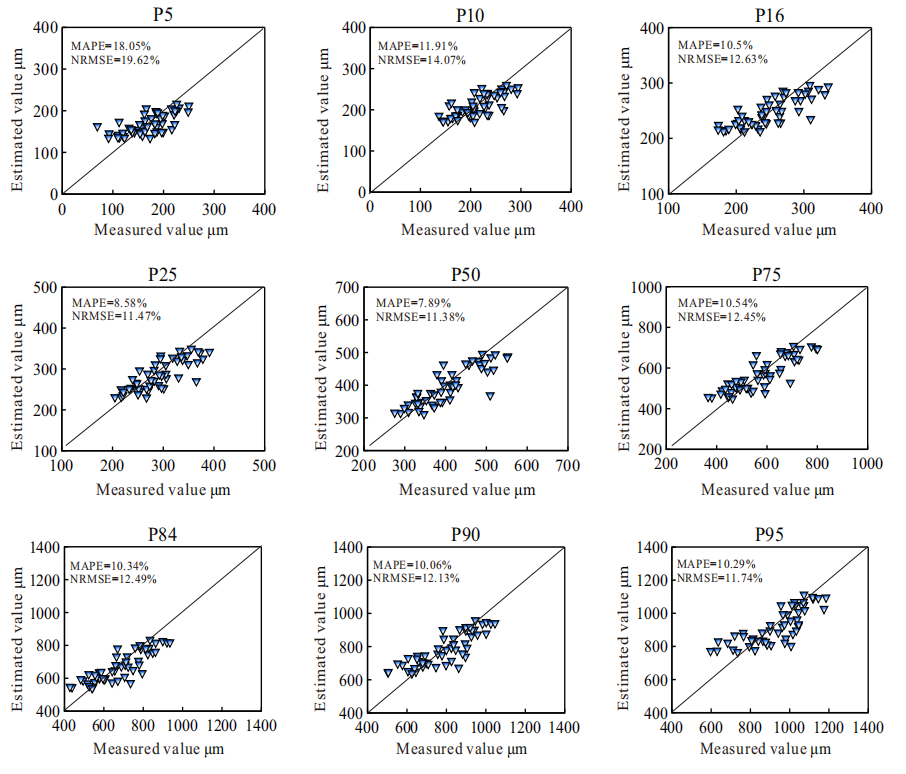 图1 论文提出的模型估算值与激光粒度仪测量值的结果比较